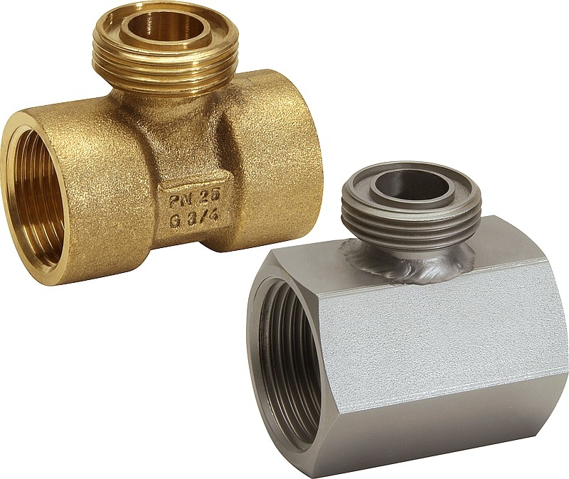 Allgemeines: T-Stücke zum direkten Einbau in Rohrleitungen mit G-Innengewinde in den Werkstoffen Messing oder Edelstahl.