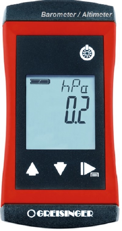 Messbereiche: | Barometer: 300,0 hPa bis 1.100,0 hPa (mbar) abs. 4,350 PSI bis 15,950 PSI abs. 225,0 mmHg bis 825,0 mmHg (Torr) abs. Altimeter: -500,0 m bis 9.000,0 m -1.640 ft bis 19.999 ft Temperatur: -20,0°C bis +50,0°C / -4,0°F bis +122,0°F |