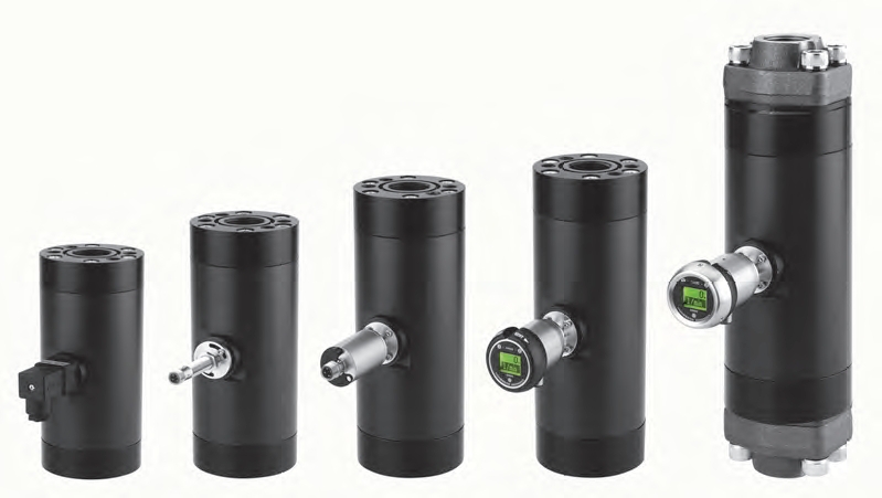 Die 2-Leiter-Ausführung stellt die Pulse durch zwei verschiedene Ströme dar und hat den Vorteil des geringeren Verdrahtungsaufwandes. Alternativ können auch Aufsatzelektroniken mit Signal-Aufbereitung der Serien OMNI, FLEX und LABO eingesetzt werden. Die Körper der Geräte bestehen aus Aluminium, die Anschlüsse wahlweise aus Aluminium (ergibt PN 160) oder Stahl (ergibt PN 350). Optional können beide Anschlussarten mit SAE-Flanschen ausgerüstet werden, die die Montage in die Rohrleitung vereinfachen und in beiden Fällen eine Druckfestigkeit von PN 350 ergeben.