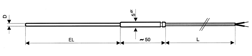 Dauertemperaturen und Drücken in Luft, Gasen und Flüssigkeiten geeignet. Die Messung erfolgt über Thermoelementdrähte (NiCr-Ni).