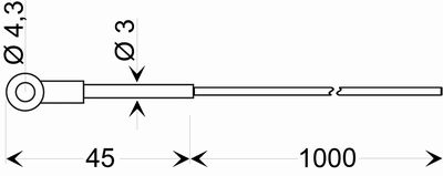 Kabelschuhfühler zum Festschrauben mit geeigneter Schraube (Standard M4), 1 m Teflonkabel, |