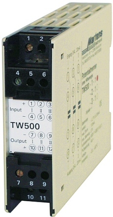 Potentialtrenner TW500 bieten die kostengünstigste Möglichkeit zur galvanischen Trennung von 0/4...20 mA Stromsignalen. Die Trennung gewährleistet zum Beispiel eine sichere Entkopplung des Sensorkreises vom Auswertekreis. Die gegenseitige Beeinflussung verschiedener Messkreise durch Masse- oder Erdpotentiale wird