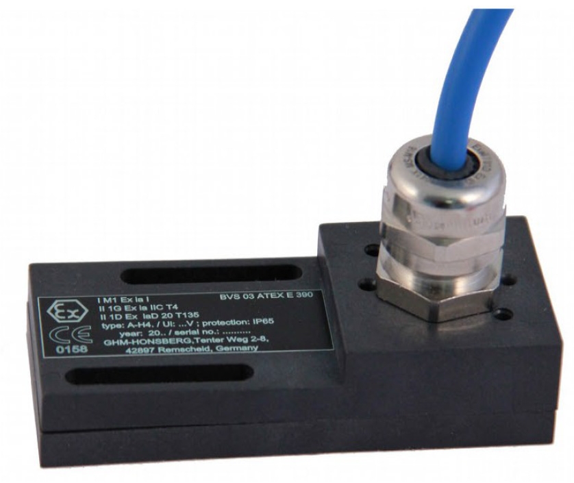 Eigensicherer Schaltkopf mit Reedschalter und ATEX Zulassung für die MR1/HD1/HD2/HR2-Gerätebaureihe zur Verwendung in eigensicheren Stromkreisen.