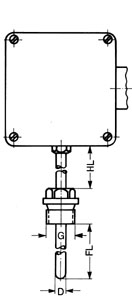 Optional: G 1/4" (= 0,635 cm), G 3/8" (= 0,9525 cm), M 5, M 6, M 8, M 10, M 12Fühlerrohr: Durchmesser "D": 3, 4, 5, 6 oder 8 mm