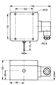Fühlerrohrlänge "FL": Standardlänge s. bei Ausführungen, optional jede beliebige Länge möglichHalsrohr (nur bei Ausf. 2): HL ) gewünschte Länge angeben Sensoreinbau: Pt-Sensoren sind grundsätzlich potentialfrei eingebaut.