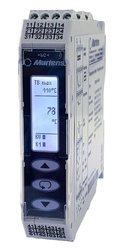 Das angeschlossene Temperatursignal wird ausgewertet und überwacht. Wird der zulässige Grenzwert erreicht oder tritt innerhalb des zulässigen Temperaturbereiches ein Fehler auf schaltet der TB225 ohne Verzögerung ab. Der zusätzliche Relaisausgang des TB225 ermöglicht mit einem unabhängigen Grenzwert die Funktion eines Voralarms. Durch Konfiguration sind folgende Betriebsarten möglich: