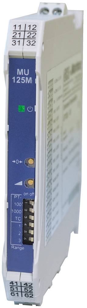 Geräte der Serie MU125 formen einen Temperaturmesswert oder Widerstandsmesswert von verschiedenen Sensoren in ein Stromsignal von 4 mA bis 20 mA um. Die universelle Konfigurierbarkeit der Messeingänge verringert die Lagerhaltung für verschiedene Einsatzfälle. Das nur 12,5 mm breite Gehäuse ermöglicht eine platzsparende Montage im Schaltschrank.