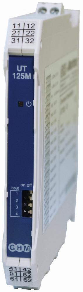 Die Universaltransmitter der Serie UT125 dienen der preiswerten Umformung von Einheitssignalen, Temperaturwerten und Potentiometerständen auf ein Stromsignal von 4 mA bis 20 mA. Die universelle Konfigurierbarkeit der Messeingänge verringert die Lagerhaltung für verschiedene Einsatzfälle. Die Messeingänge und der Istwertausgang sind nicht galvanisch getrennt. Das nur 12,5 mm breite Gehäuse ermöglicht eine platzsparende Montage im Schaltschrank.