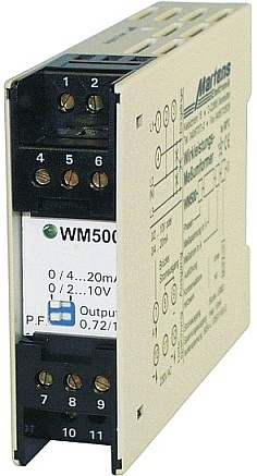 Der Wirkleistungs-Messumformer WM 500 konvertiert die Wirkleistung von symmetrischen elektrischen Verbrauchern in 1- und 3-Phasen Netzen in proportionale Einheitssignale. Die Ausführung ohne Kompensationsnetzwerk eignet sich auch zur Wirkleistungsmessung von Phasenanschnittssteuerungen oder Motoren, die über Frequenzumrichter betrieben werden. In der Ausführung mit Kompensationsnetzwerk (nur für sinusförmige Spannungen) werden Fehler, die durch unterschiedliche Abweichungen der Außenleiterspannungen von der Nennspannung entstehen, ausgeglichen. Die Kurvenform des Messstromes spielt bei beiden Ausführungen keine Rolle.