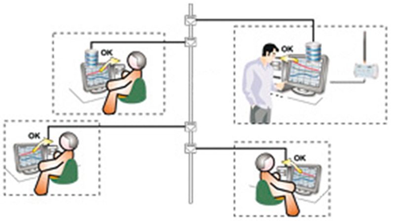 - Multiclient-Verbindung zur Datenbank: Es ist möglich, die programmeigene Datenbank entweder lokal oder im lokalen Netzwerk zu speichern; die Anzeige der Daten kann dann von jedem beliebigen PC im lokalen Netzwerk erfolgen, auf dem die Software HD35-AP-S installiert ist