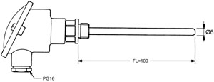 standard version (Pt100): special version (additional charge): - arbitrary probe length FL: additional charge per 100 mm