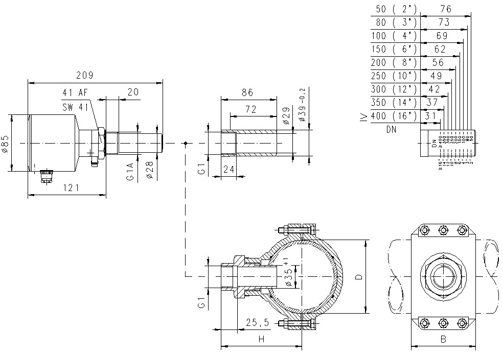 connection: | DN 25 welding socket, stainless steel DN 50 to DN 150 tapping sleeve, PP |